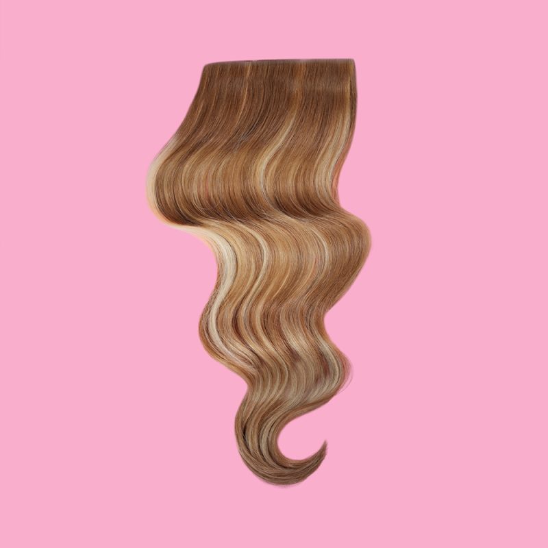 Beverly Hills è una linea luxury di 29 nuance in capelli brasiliani di altissima qualità selezionati uno per uno per dare risultati strepitosi. Ogni confezione è composta da due SUPERGIRL, vale a dire da una coppia da applicare a sandwich cioè 2 fasce singole per una lunghezza di 55 cm ed un peso di 50 grammi complessivi. Con una confezione si riesce ad allungare una lunghezza media a punta sfilata.
